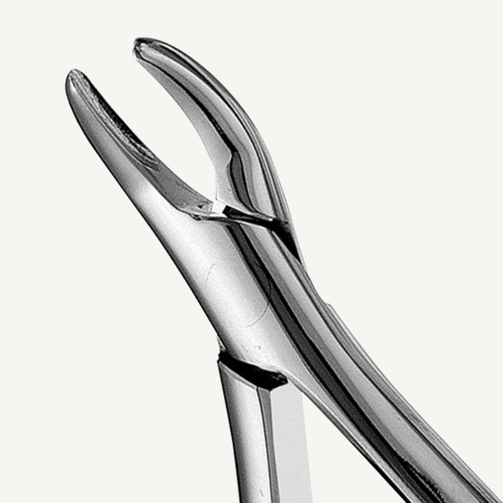 American Pattern Extraction Forceps are made from stainless steel. Forceps are meticulously hand crafted and finished with a scissors hinge to equally distribute forces, and allow easier cleaning and overall maintenance. These forceps are electropolished to a “mirror finish” for maximum corrosion resistance. The beaks of American Pattern Extraction Forceps are designed anatomically to adapt to the tooth at or below the cervical line. Many beaks are serrated, that improves the grasp during extractions.