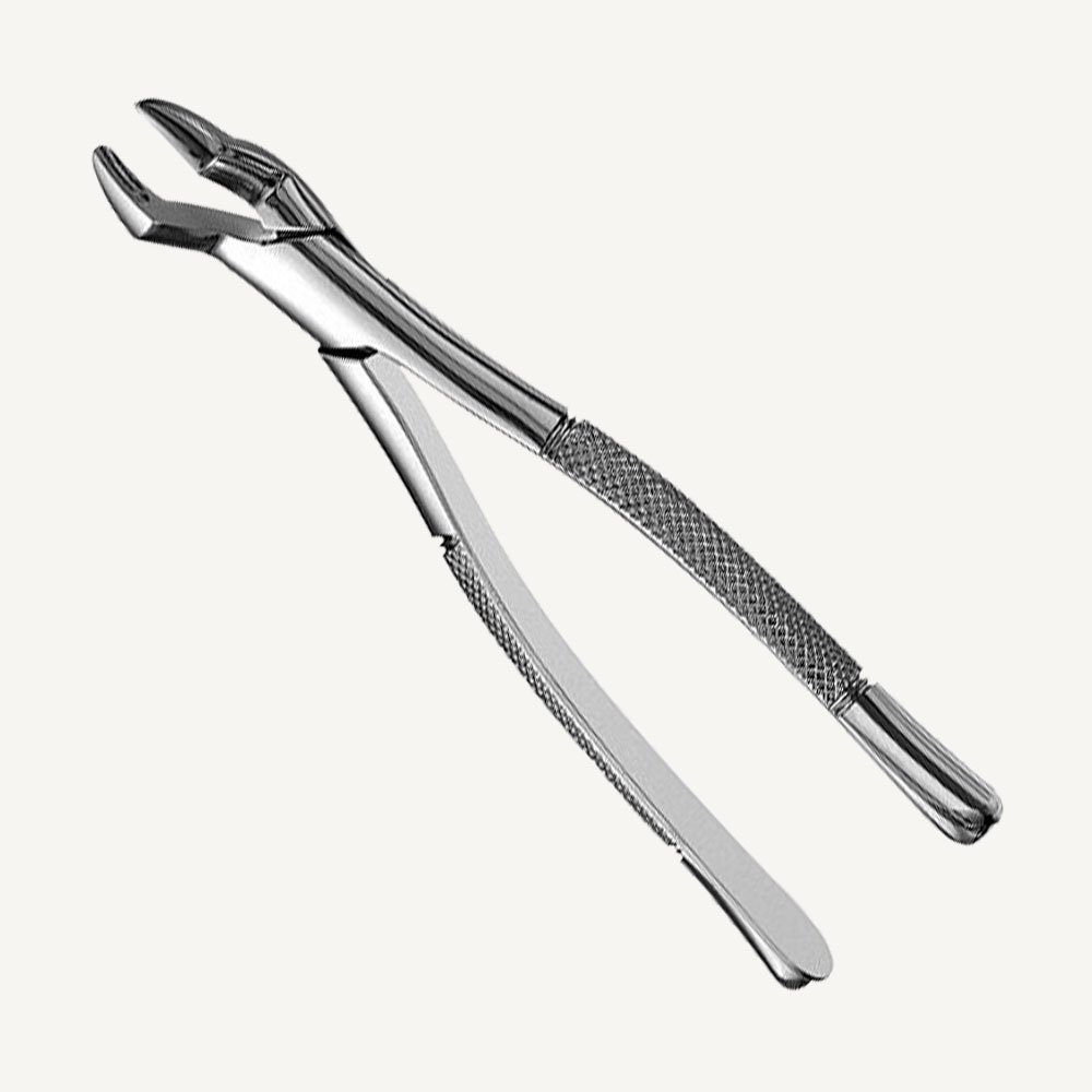 American Pattern Extraction Forceps are made from stainless steel. Forceps are meticulously hand crafted and finished with a scissors hinge to equally distribute forces, and allow easier cleaning and overall maintenance. These forceps are electropolished to a “mirror finish” for maximum corrosion resistance. The beaks of American Pattern Extraction Forceps are designed anatomically to adapt to the tooth at or below the cervical line. Many beaks are serrated, that improves the grasp during extractions.