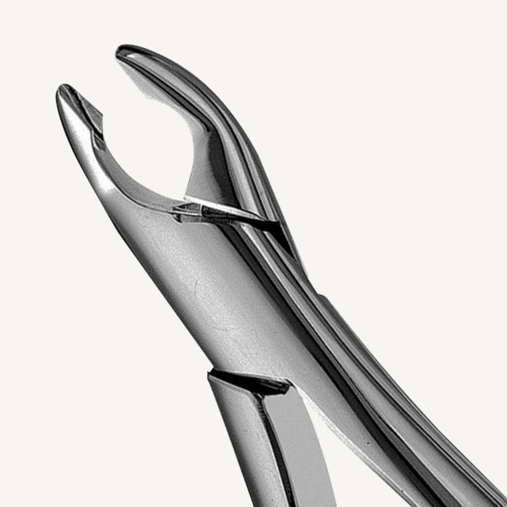 American Pattern Extraction Forceps are made from stainless steel. Forceps are meticulously hand crafted and finished with a scissors hinge to equally distribute forces, and allow easier cleaning and overall maintenance. These forceps are electropolished to a “mirror finish” for maximum corrosion resistance. The beaks of American Pattern Extraction Forceps are designed anatomically to adapt to the tooth at or below the cervical line. Many beaks are serrated, that improves the grasp during extractions.