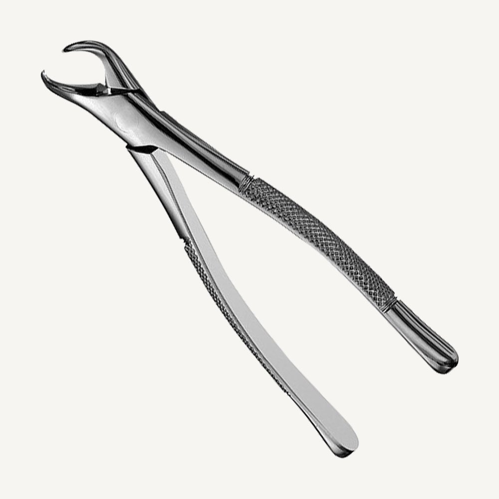 American Pattern Extraction Forceps are made from stainless steel. Forceps are meticulously hand crafted and finished with a scissors hinge to equally distribute forces, and allow easier cleaning and overall maintenance. These forceps are electropolished to a “mirror finish” for maximum corrosion resistance. The beaks of American Pattern Extraction Forceps are designed anatomically to adapt to the tooth at or below the cervical line. Many beaks are serrated, that improves the grasp during extractions.