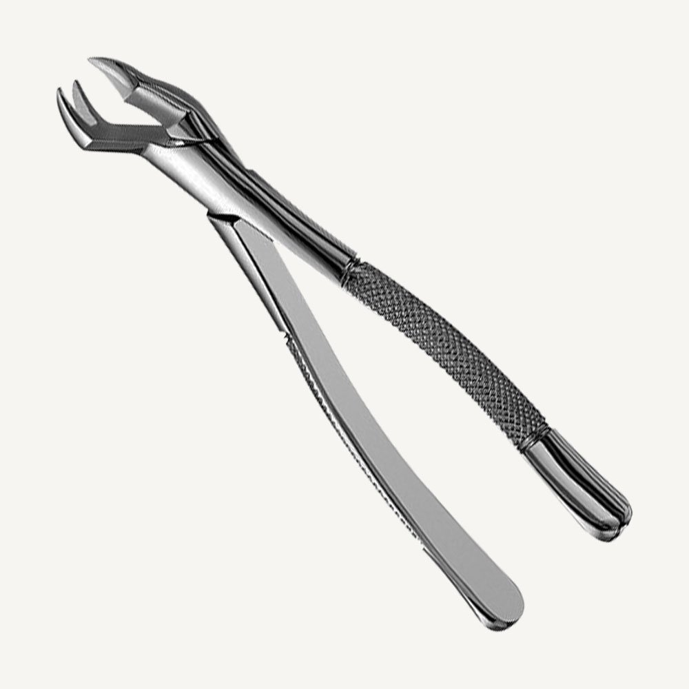 American Pattern Extraction Forceps are made from stainless steel. Forceps are meticulously hand crafted and finished with a scissors hinge to equally distribute forces, and allow easier cleaning and overall maintenance. These forceps are electropolished to a “mirror finish” for maximum corrosion resistance. The beaks of American Pattern Extraction Forceps are designed anatomically to adapt to the tooth at or below the cervical line. Many beaks are serrated, that improves the grasp during extractions.