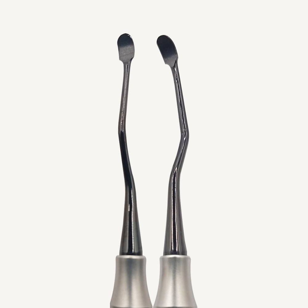 Designed to initiate the elevation of the subperiosteal tunnel. For optimal performance, position the elevator with the concave side and sharp tip facing the bone. It’s essential to maintain contact between the leading edge and the bone throughout the elevation process.