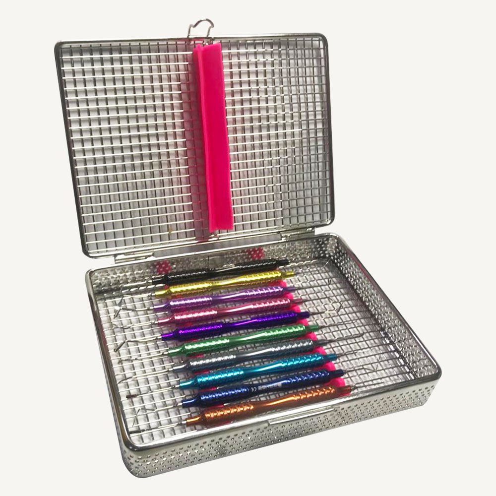 Included in the kit is a complete set of instruments conveniently organized in a mesh tray, catering to a diverse range of restoration cases. From composite layering to intricate detailing, each instrument is thoughtfully designed to facilitate precise and seamless restoration procedures, ensuring exceptional results for every patient.