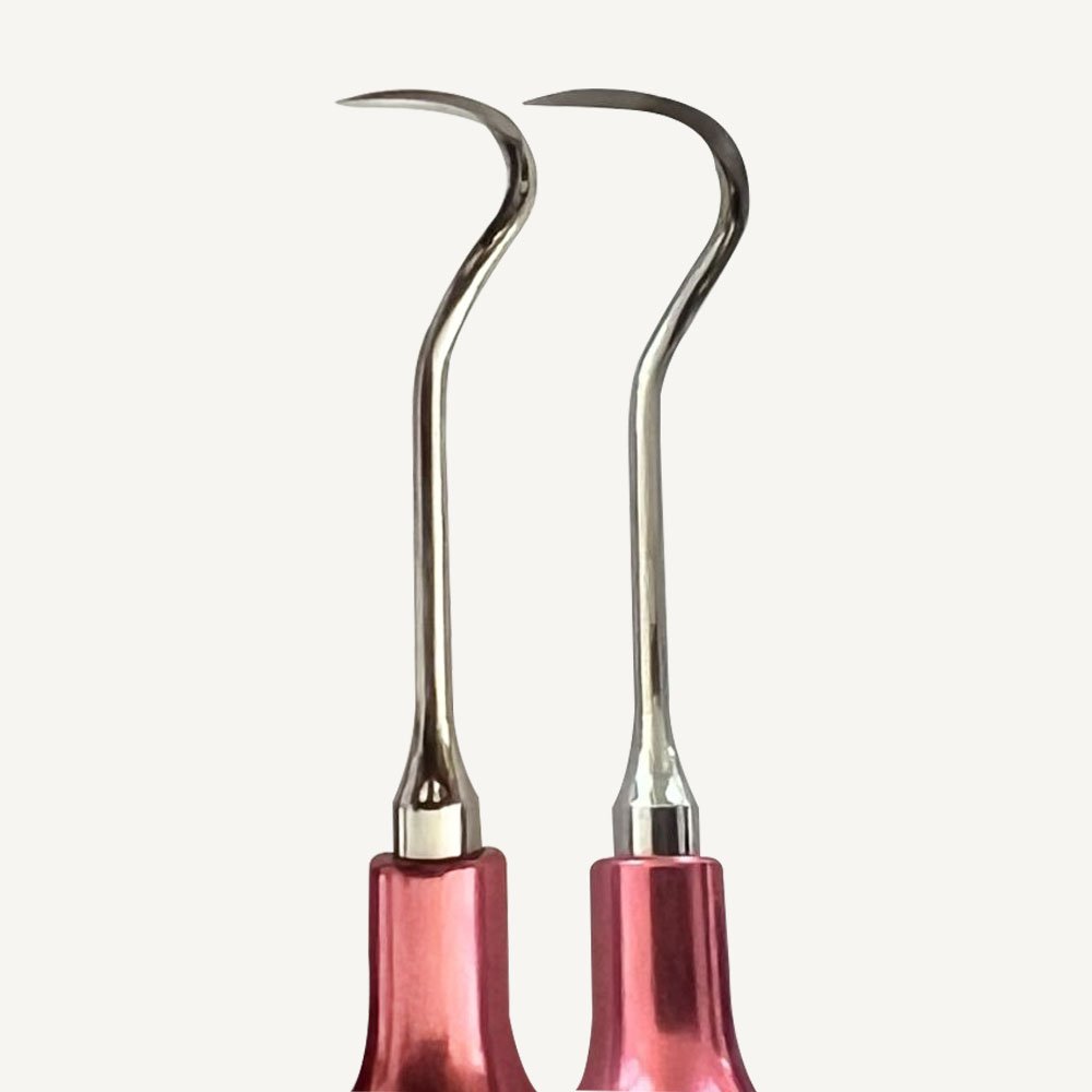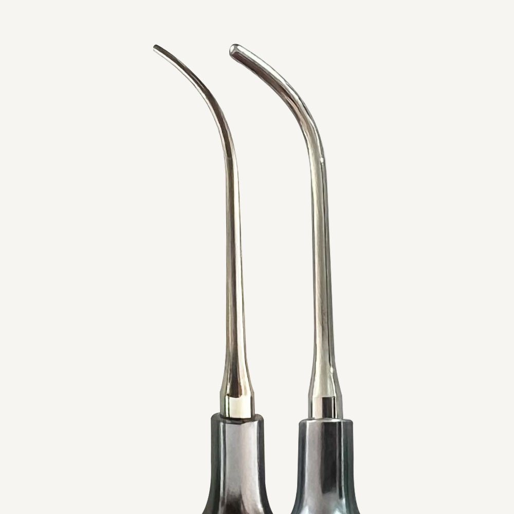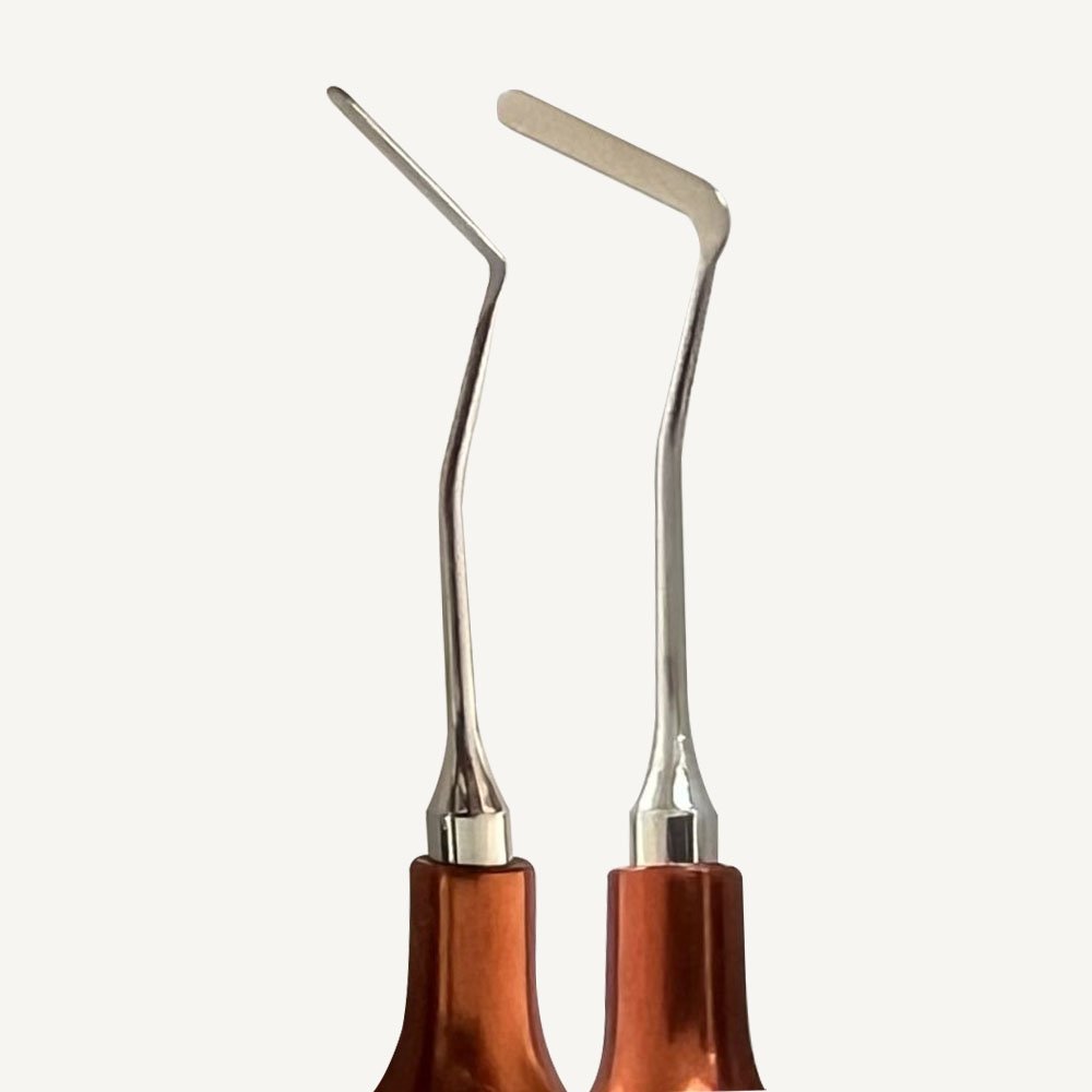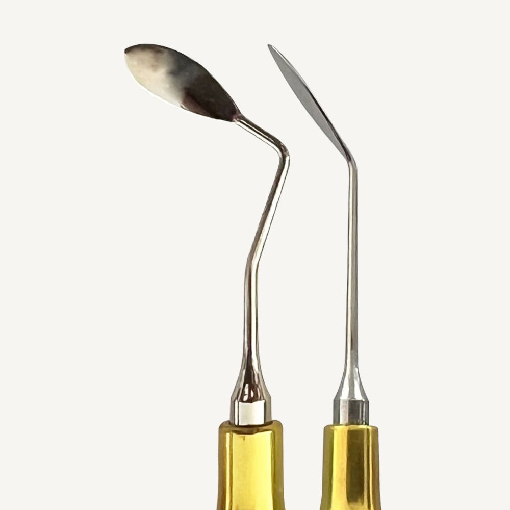 A long, rounded condenser meticulously crafted for composite modeling. The instrument’s angled shanks provide unrestricted access to all cavities. Featuring both thick and thin tips, the condenser accommodates various cavity sizes in both anterior and posterior regions. Its rounded working end allows for delicate composite condensation without any risk of adhesion