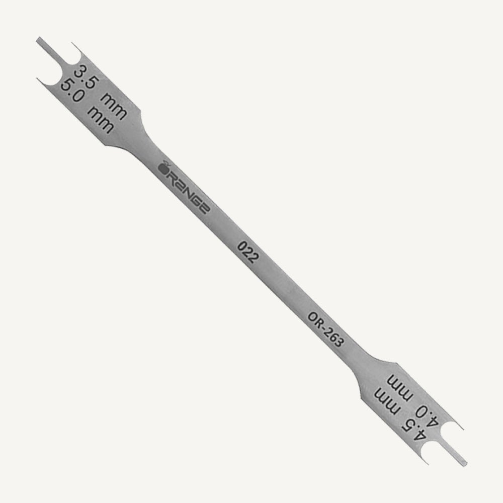 Aluminum Height Gauge 0.22 measures height of bracket placement from incisal edge. 3.5, 4.0, 4.5, and 5.0mm.