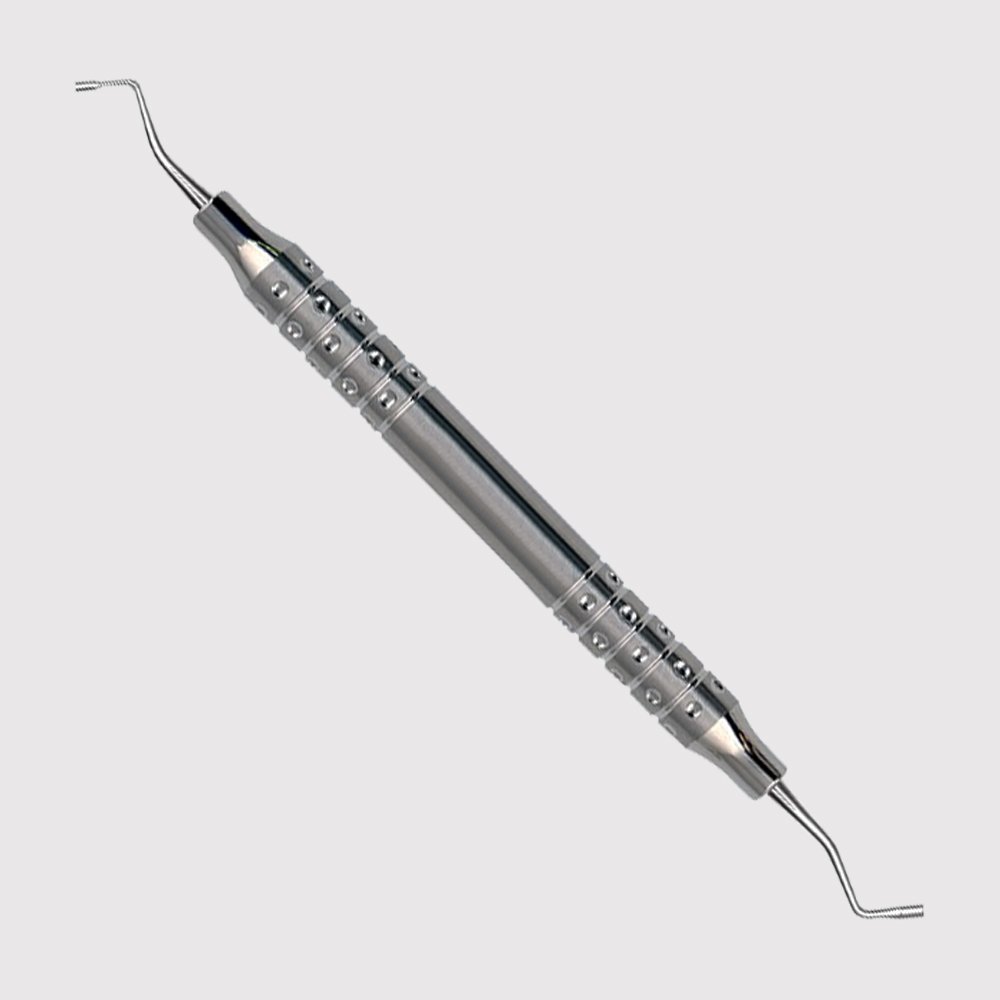 A condenser which is also known as a plugger, it is a restorative instrument that’s used to pack amalgam or other filling materials into cavity preparations. Pluggers/condensers are also available in a wide range of combinations with plain or serrated tips and the terminal shanks are angled at 50° to the center line of the instrument. Condensers are very unique, they have large diameter and light weight handle for max comfort, they are used to reduced hand fatigue and increased control.