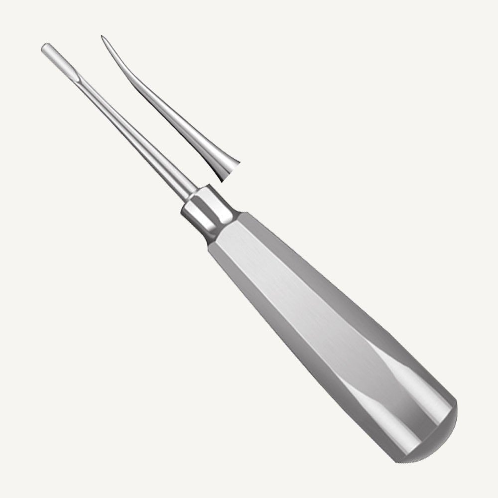 Apexo Elevator is a dental instrument primarily used to remove fractured root tips or fragments deeply embedded in the socket, particularly in the lower jaw molars. Size: 3.5mm x 90mm
