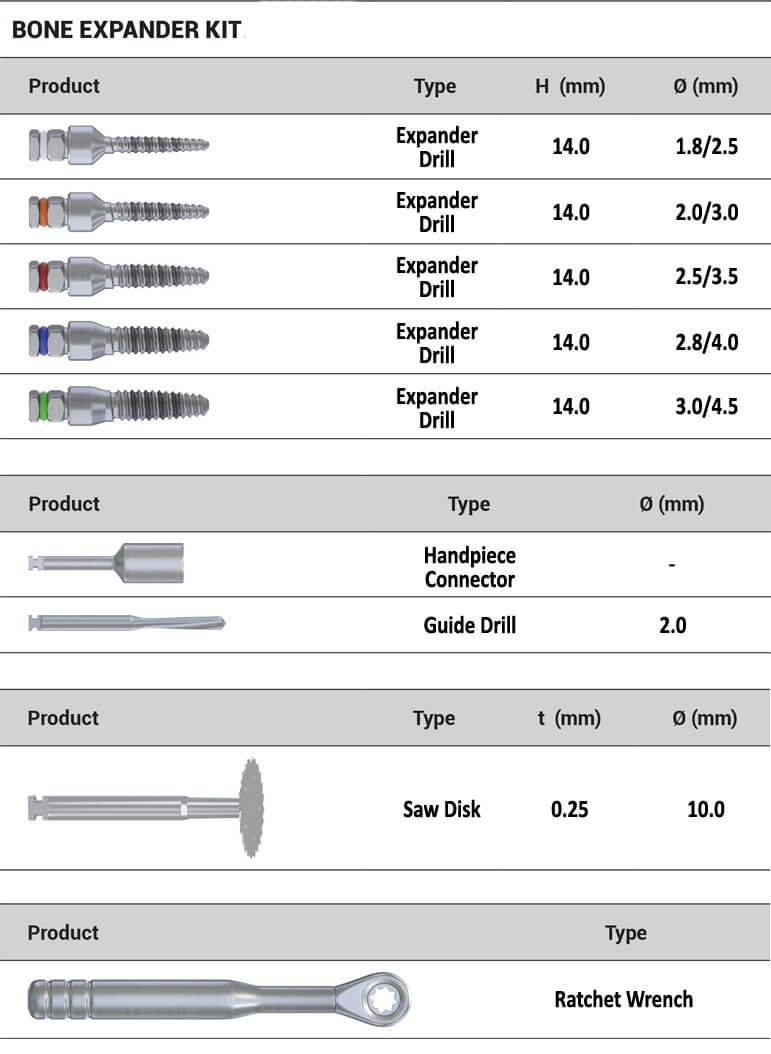 This kit provides drills of diameters perfectly compatible with the most available implant platforms, allowing you to expand any bone without any issues. Furthermore, these drills ensure that sockets will be ready for immediate implant insertion.