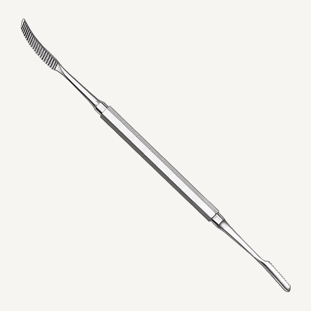 A bone file is a surgical instrument used to smooth and shape bone surfaces after cutting or extraction. It features a textured, rasp-like surface on one or both ends, designed to gently file down sharp or uneven bone edges. Commonly used in oral surgery, orthopedic, and veterinary procedures, the bone file helps ensure a clean…