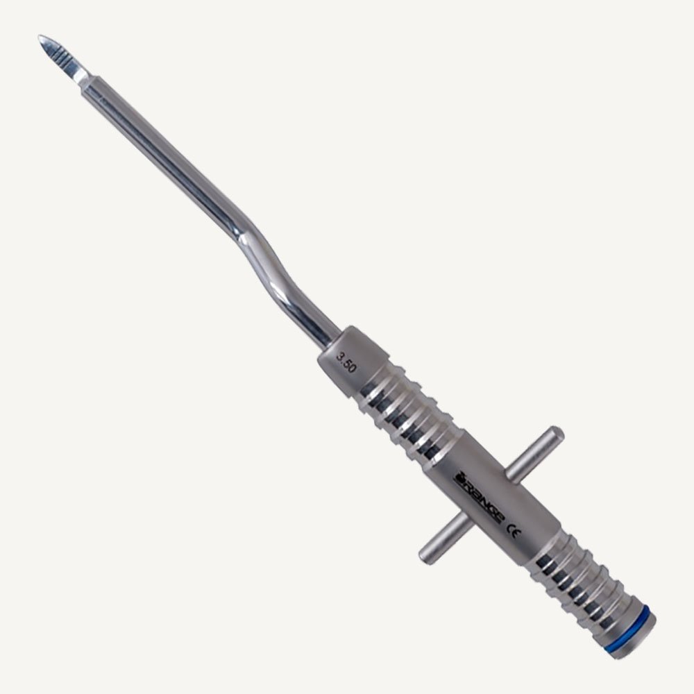 3.5mm wide bayonet style bone spreader made of stainless steel with depth marking and offset T-Bar Handle which is used for preparing bone.