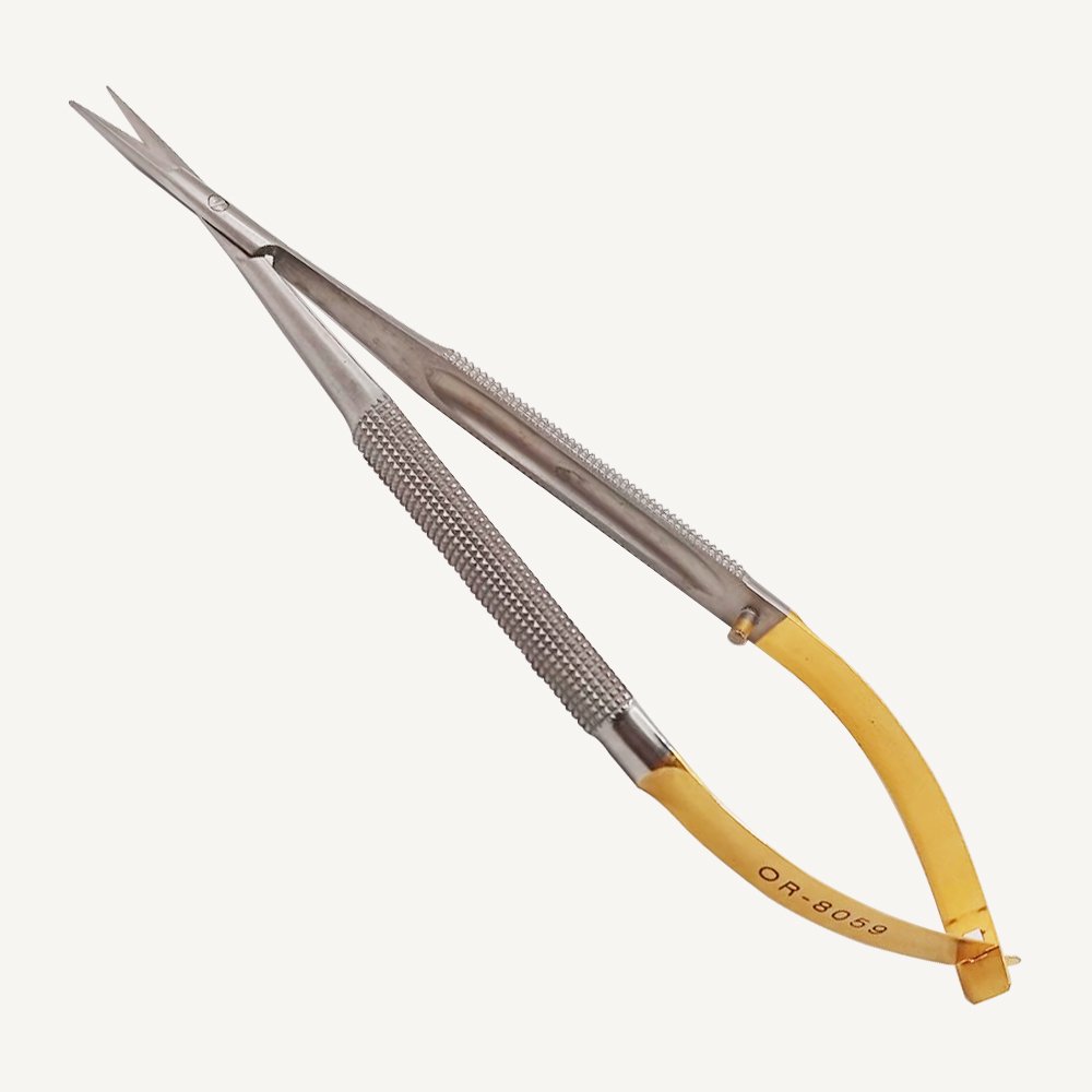 The scissors are equipped with an ergonomic spring-handle mechanism, allowing smooth and precise control with minimal hand fatigue. The spring action aids in rapid yet gentle opening and closing, supporting delicate movements essential for microsurgical environments. This design minimizes muscle strain during prolonged procedures and enhances the surgeon’s accuracy and confidence.