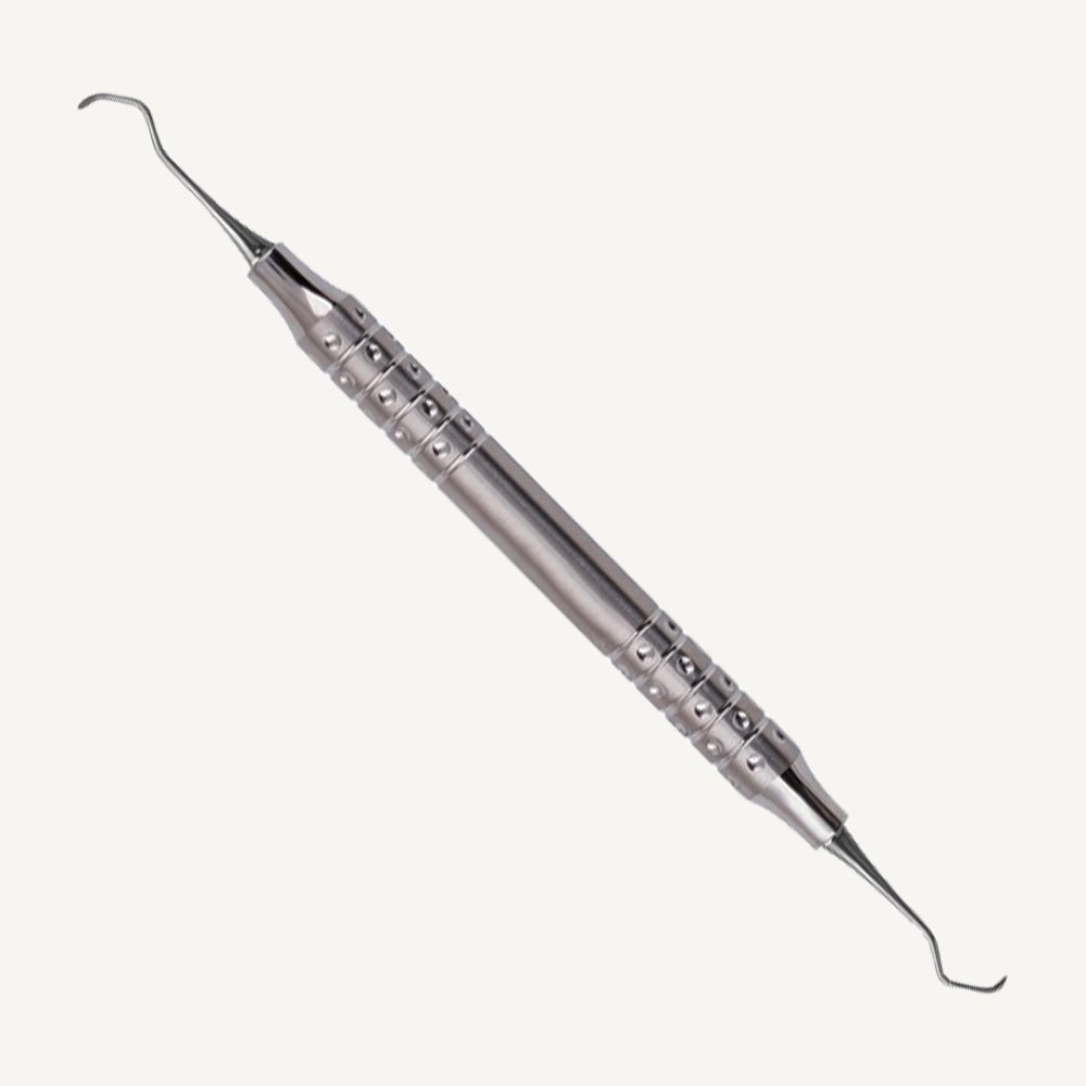 Columbia Curette 13/14 designed with 2 cutting edges and a rounded toe which is used on all surfaces.