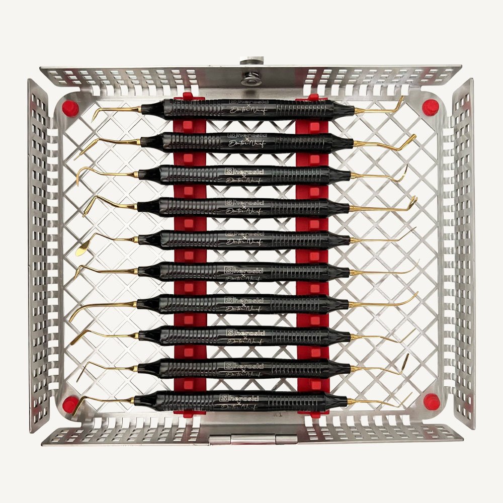 Included in the kit is a complete set of instruments conveniently organized in a mesh tray, catering to a diverse range of restoration cases. From composite layering to intricate detailing, each instrument is thoughtfully designed to facilitate precise and seamless restoration procedures, ensuring exceptional results for every patient.