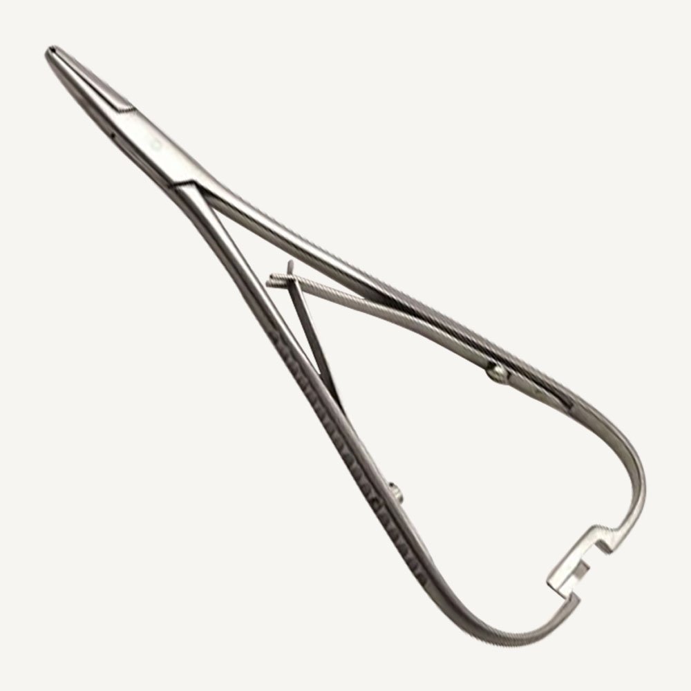 Elastic Placing Mathieu Pliers With Hole features a groove at tips for non-slip placement of elastic ligatures.