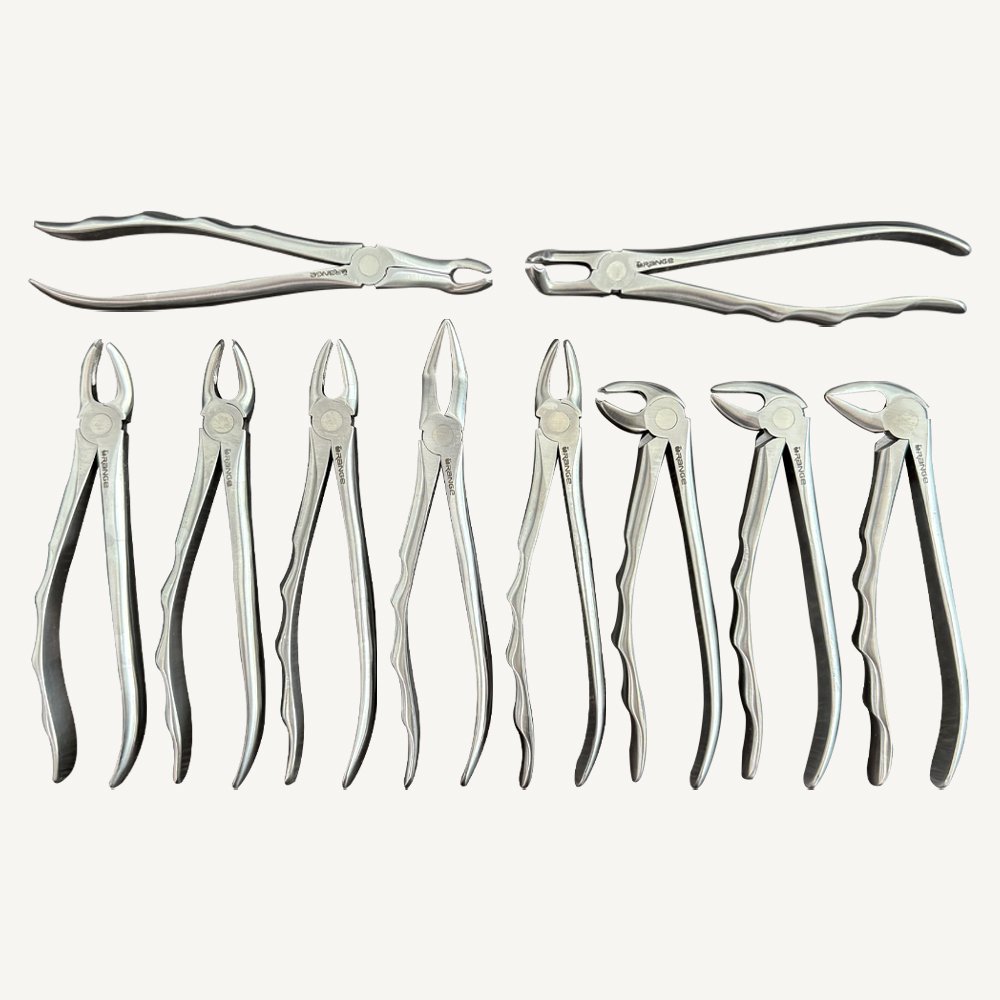 Extraction Forceps Set, Set of 10 forcepsĀ with ergonomic handle.