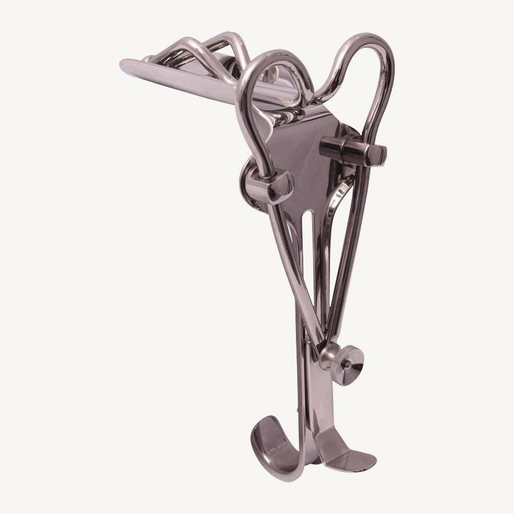 Guttman Speculum features a solid center blade with no upper blades to allow for maximal visualization of the vaginal canal. The instrument has two separators that aid in opening and stabilizing the vagina. Blade Dimensions: 90mm x 30mm