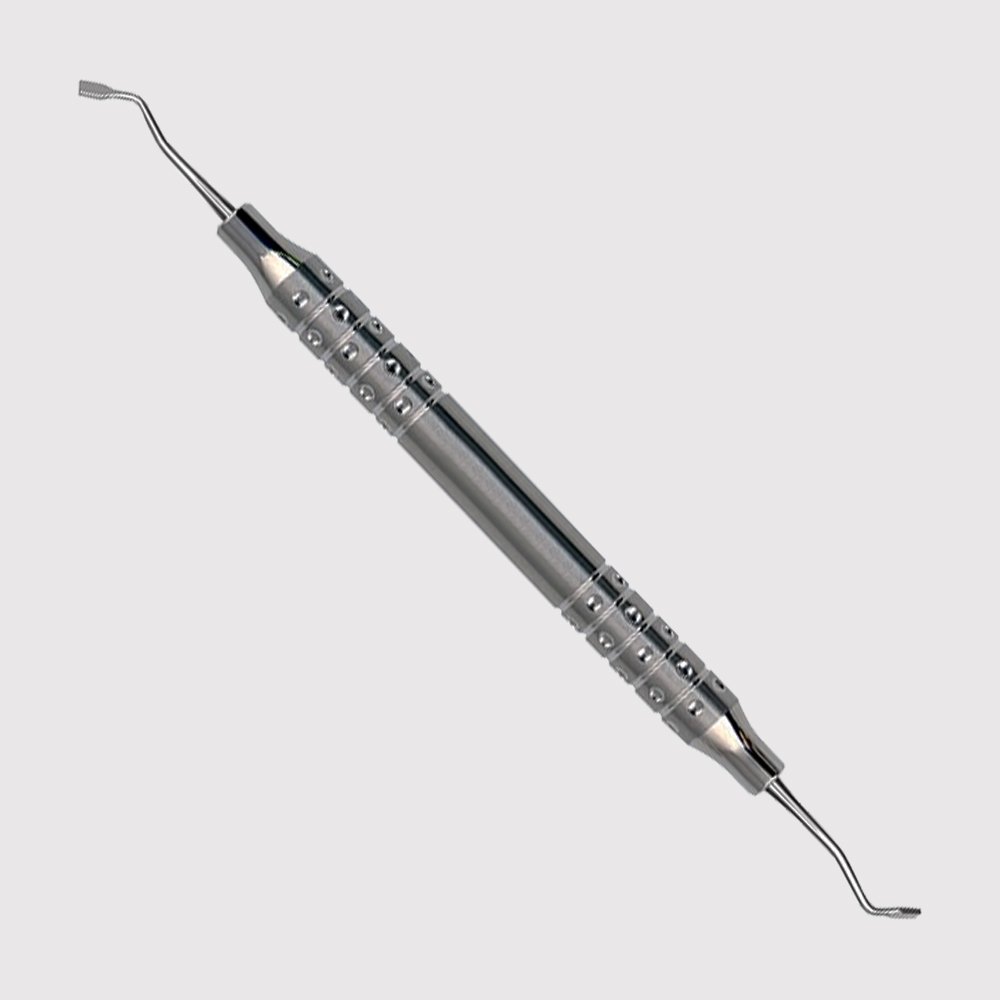 A condenser which is also known as a plugger, it is a restorative instrument that’s used to pack amalgam or other filling materials into cavity preparations. Pluggers/condensers are also available in a wide range of combinations with plain or serrated tips and the terminal shanks are angled at 50° to the center line of the instrument. Condensers are very unique, they have large diameter and light weight handle for max comfort, they are used to reduced hand fatigue and increased control.