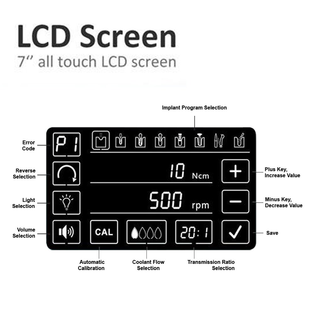 Implant Motor Large Touch Screen Ensures all Treatment Parameters Visible and Handfree Operations