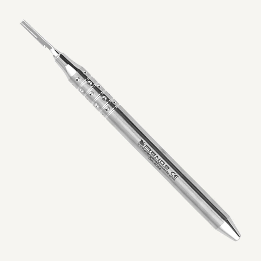 A straight, round scalpel handle is used in dentistry and other surgical settings for its ergonomic grip, which facilitates fingertip control and rotational movement for precise, delicate incisions and tissue manipulation, especially in hard-to-reach areas. Its balanced, cylindrical design provides comfort and stability during procedures, and its compatibility with various standard blades makes it a versatile tool…