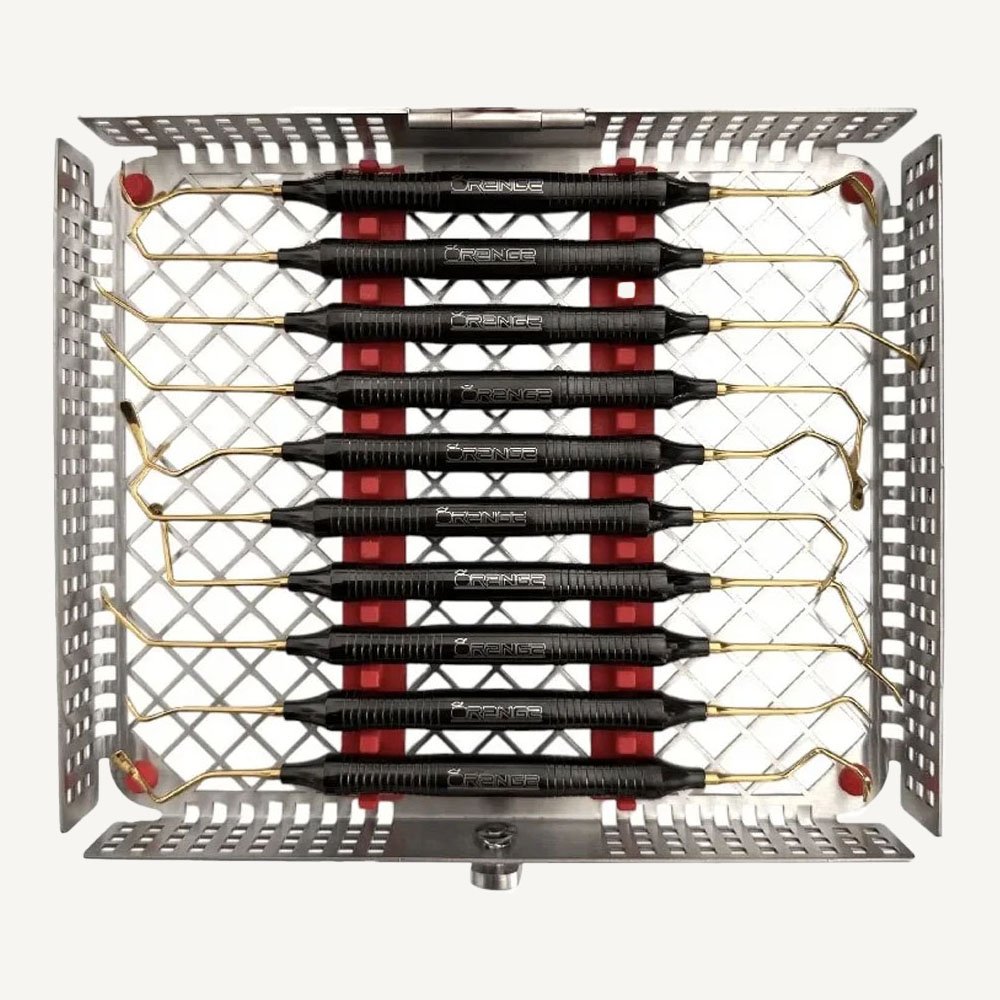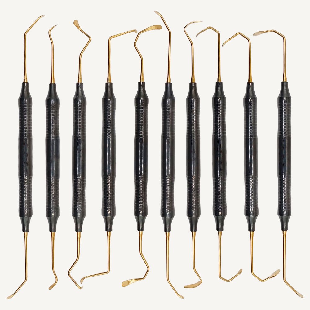 Each instrument in this advanced kit is coated with black, offering several clinical benefits. The coating provides enhanced corrosion resistance, reduced light reflection, and increased surface hardness, making the tools more durable and comfortable to use during long procedures. The vibrant black finish also improves visibility, helping clinicians distinguish instruments more easily in sterile setups.