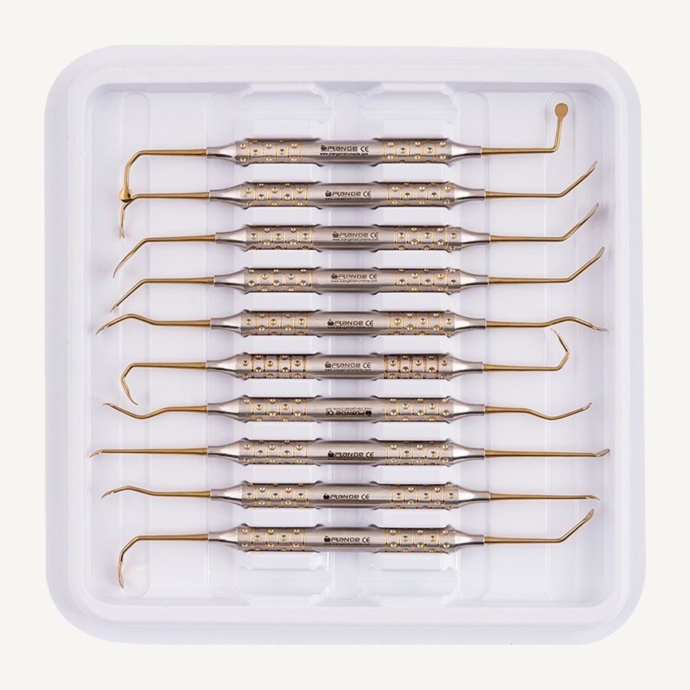 Each instrument in this advanced kit is coated with blue titanium, offering several clinical benefits. The coating provides enhanced corrosion resistance, reduced light reflection, and increased surface hardness, making the tools more durable and comfortable to use during long procedures. The vibrant blue finish also improves visibility, helping clinicians distinguish instruments more easily in sterile setups.