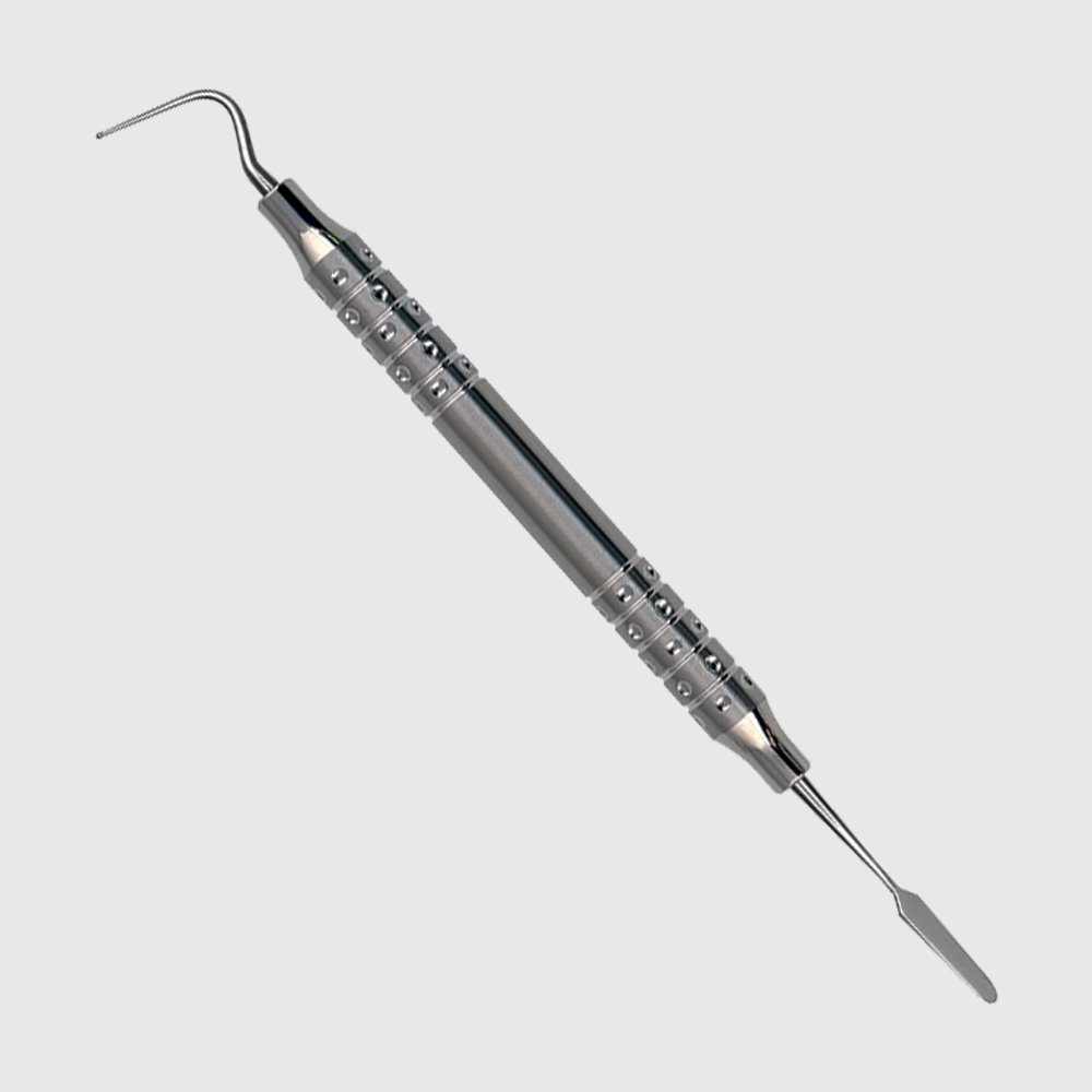 Placement instruments are restorative instruments which are used to deliver and place liner and base materials within the cavity preparation. The placement ball tip has diameter 0.8 mm . Placement instruments are very unique, they have large diameter and light weight handle for maximum comfort, they are also used to reduced hand fatigue and increased control.