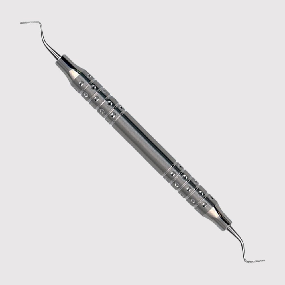 A condenser which is also known as a plugger, it is a restorative instrument that’s used to pack amalgam or other filling materials into cavity preparations. Pluggers/condensers are also available in a wide range of combinations with plain or serrated tips and the terminal shanks are angled at 50° to the center line of the instrument. Condensers are very unique, they have large diameter and light weight handle for max comfort, they are used to reduced hand fatigue and increased control.