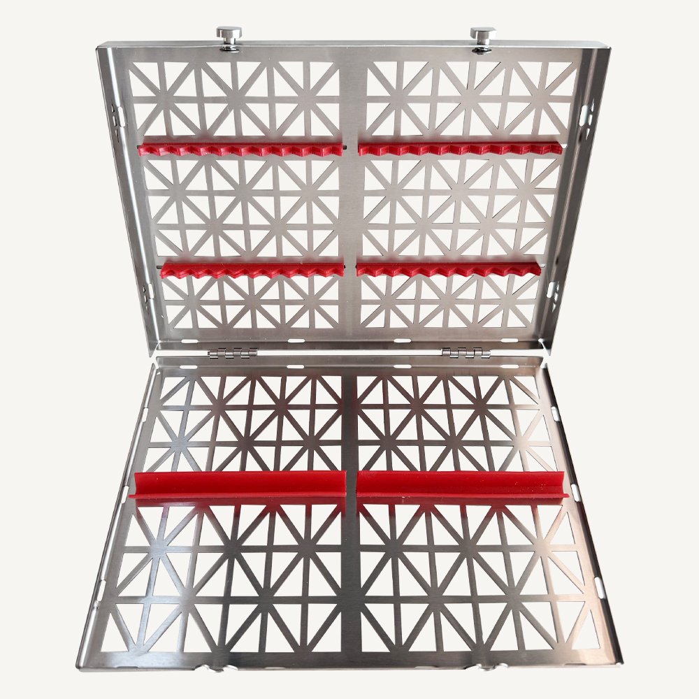 - Optimized design ensures firm instrument retention while maximizing exposure for effective sterilization.