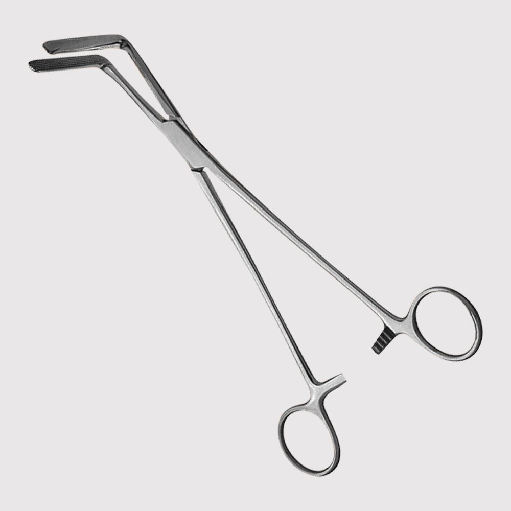 Wertheim-Cullen Pedicle Forceps Size: Overall length 8-1/2 inches (21.6cm) Angled, Longitudinal Serrations.